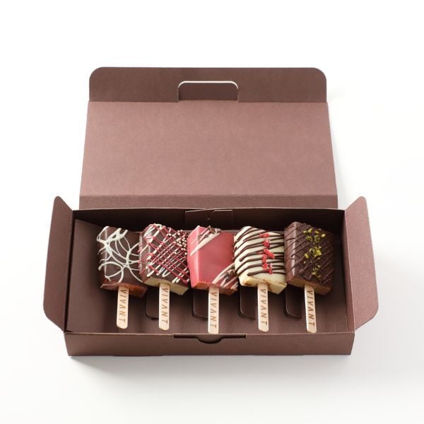 VIVANT BAR Luxury(ビバァーンバー ラグジュアリー)は、最高品質のチョコレートを贅沢全体にまとった商品です。5本セットになっているので、多数の方にお配りいただくこともできます。 VIVANT BARは”ポップでかわいい”が人気ですが、今回のLuxuryでは、"大人のシックなイメージ"へと変貌を遂げました。