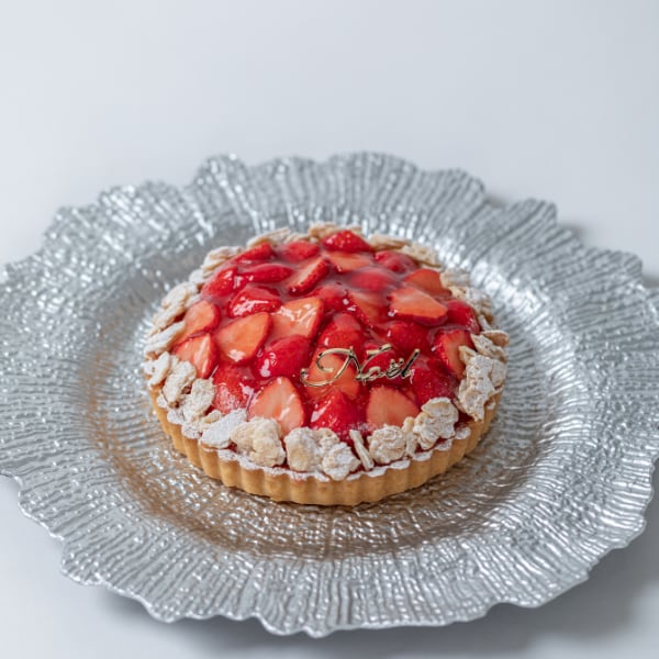 いちごの甘酸っぱい風味とサクサクのタルト生地が絶妙にマッチしたタルトケーキ。周りにはアーモンドをカリカリ食感になるまでローストした、アーモンドクロカンを贅沢にトッピング。シンプルながら素材の味を堪能できる、VIVANT自慢のいちごタルトです。
